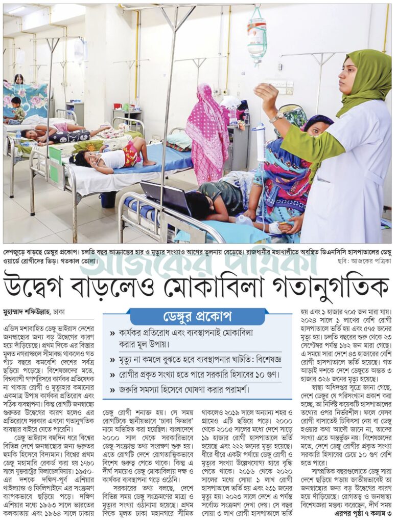 এডিস মশাবাহিত ডেঙ্গু ভাইরাস দেশের জনস্বাস্থ্যের জন্য বড় উদ্বেগের কারণ হয়ে দাঁড়িয়েছে। প্রথম দিকে এর বিস্তার মূলত নগরাঞ্চলে সীমাবদ্ধ থাকলেও গত পাঁচ বছরে কম-বেশি দেশের সর্বত্র ছড়িয়ে পড়েছে। বিশেষজ্ঞদের মতে, বিশ্বব্যাপী গণপরিসরে কার্যকর প্রতিষেধক না থাকায় রোগী ও মৃত্যুহার কমানোর একমাত্র উপায় কার্যকর প্রতিরোধ এবং সঠিক ব্যবস্থাপনা। কিন্তু রোগটি জনস্বাস্থ্যে গুরুতর উদ্বেগের কারণ হলেও এর প্রতিরোধে সরকার এখনো গতানুগতিক ব্যবস্থার বাইরে যেতে পারেনি।