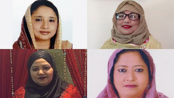উপরে ঢাকা উত্তর সিটি করপোরেশনের ৮ নম্বর ওয়ার্ডের কাউন্সিলর প্রার্থী ফেরদৌসী আহমেদ মিষ্টি ও ৩৬ নম্বর ওয়ার্ডের সাজেদা আলী হেলেন; নিচে দক্ষিণের ২৭ নম্বর ওয়ার্ডেন শাহিদা মোর্শেদ ও ৩৮ নম্বর ওয়ার্ডের মেহেরুন্নেছা- সংগৃহীত
