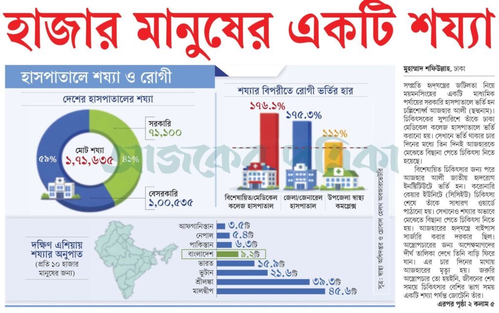 দেশের হাসপাতালগুলোর মোট শয্যার মাত্র ৪১ শতাংশ সরকারিতে হওয়ায় সিংহভাগ মানুষ চিকিৎসার জন্য নির্ভর করতে বাধ্য হন ব্যয়বহুল বেসরকারি খাতে।
